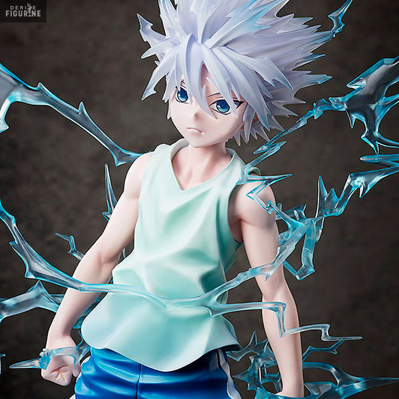 Killua fait partie de la famille Zoldyck, qui est connue pour être composée de grands assassins. Par contre, depuis sa rencontre avec Gon, il fait tout son possible pour ne pas suivre les traces de sa famille. Il c'est aussi entraîné dur pour parfaire sa maîtrise de son nen, et comme vous pouvez le voir, il peut même changer son aura en foudre, ce qui fait un rendu vraiment impressionnant sur cette statuette.