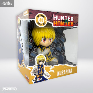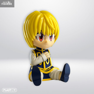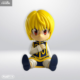 Figurine tirelire officielle de Kurapika en PVC mesurant environ 15 centimètres de haut. Le fabricant est Plastoy.