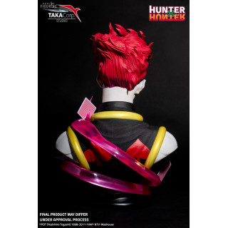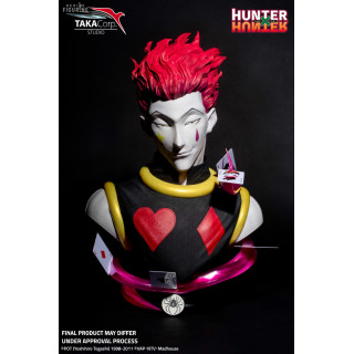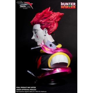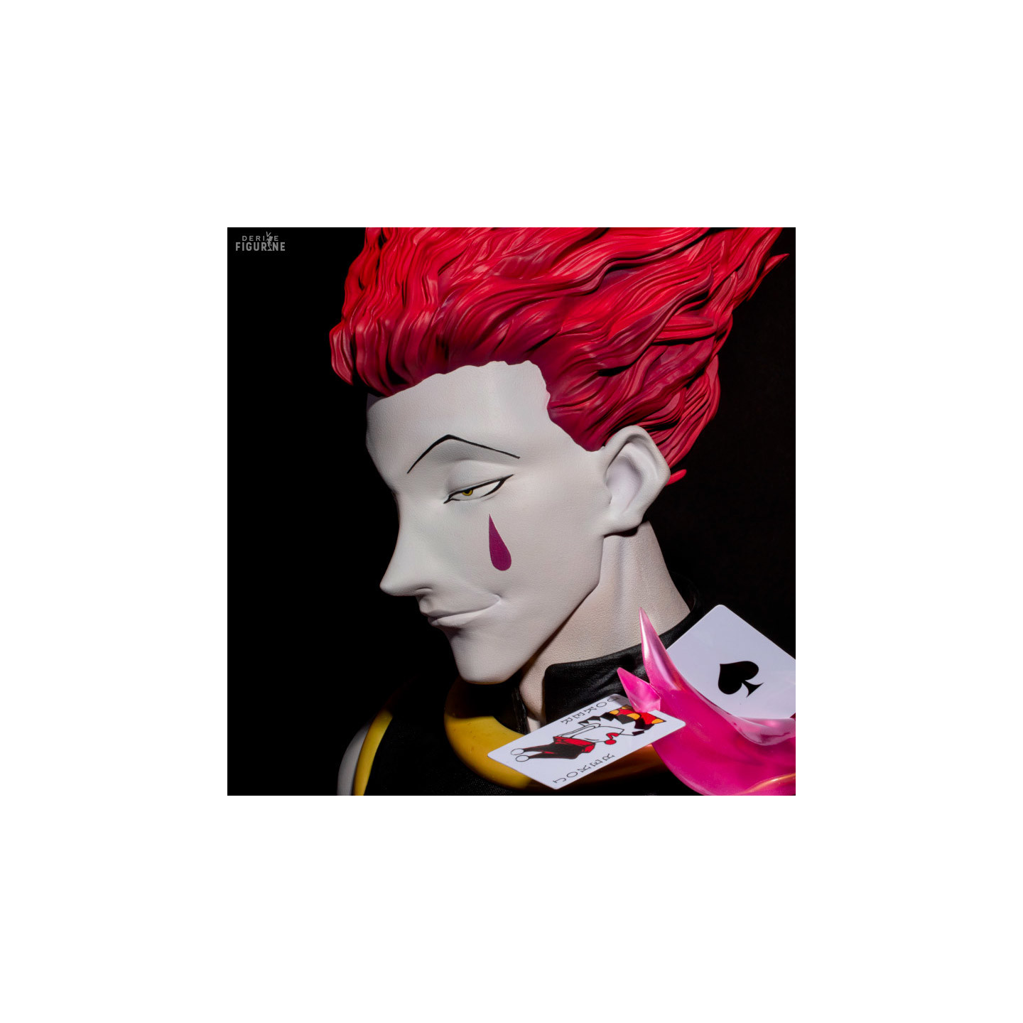 Dans Hunter x Hunter, le jeune Gon en quête de retrouver son père et par la même occasion, de devenir un Hunter professionnel, va rencontrer un terrifiant personnage répondant au nom de Hisoka. A l'allure de bouffon magicien, Hisoka cherche tout comme lui a passer l'examen pour devenir Hunter professionnel mais par le passé, il a aussi été l'un des membres de l'organisation de la brigade fantôme. Hisoka et Gon se verront tout au cours de l'histoire. Hisoka est clairement considéré comme un antagoniste culte et beaucoup de fans le considère comme étant leur personnage préféré. A noter que le buste est une édition limitée à seulement 300 exemplaires dans le monde.