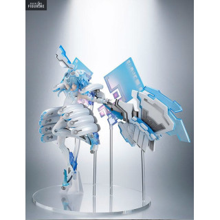 Dans l'univers vidéoludique J-RPG de Hyperdimension Neptunia parodiant la guerre des consoles, il y a la toute mignonne Blanc et cette dernière dirige le monde de Lowee qui représente "Nintendo". Elle est la déesse de ce monde et elle peut compter sur ses frères et sœurs jumeaux Rom et Ram pour l'épauler. Cette prestigieuse figurine montre Blanc sous une autre forme que l'on appelle White Heart. Il s'agit de sa transformation en tant que CPU de Lowee !