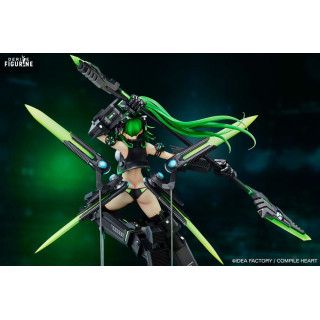 Réalisée en PVC, cette figurine mesure environ 38 cm à l’échelle 1/7. Les finitions allient brillance métallique et mats texturés. Les détails électroniques sont nets, les articulations précises, et le mouvement des cheveux renforce l’illusion de vitesse. Une pièce impressionnante pour les fans de Neptunia et des designs mecha stylisés.