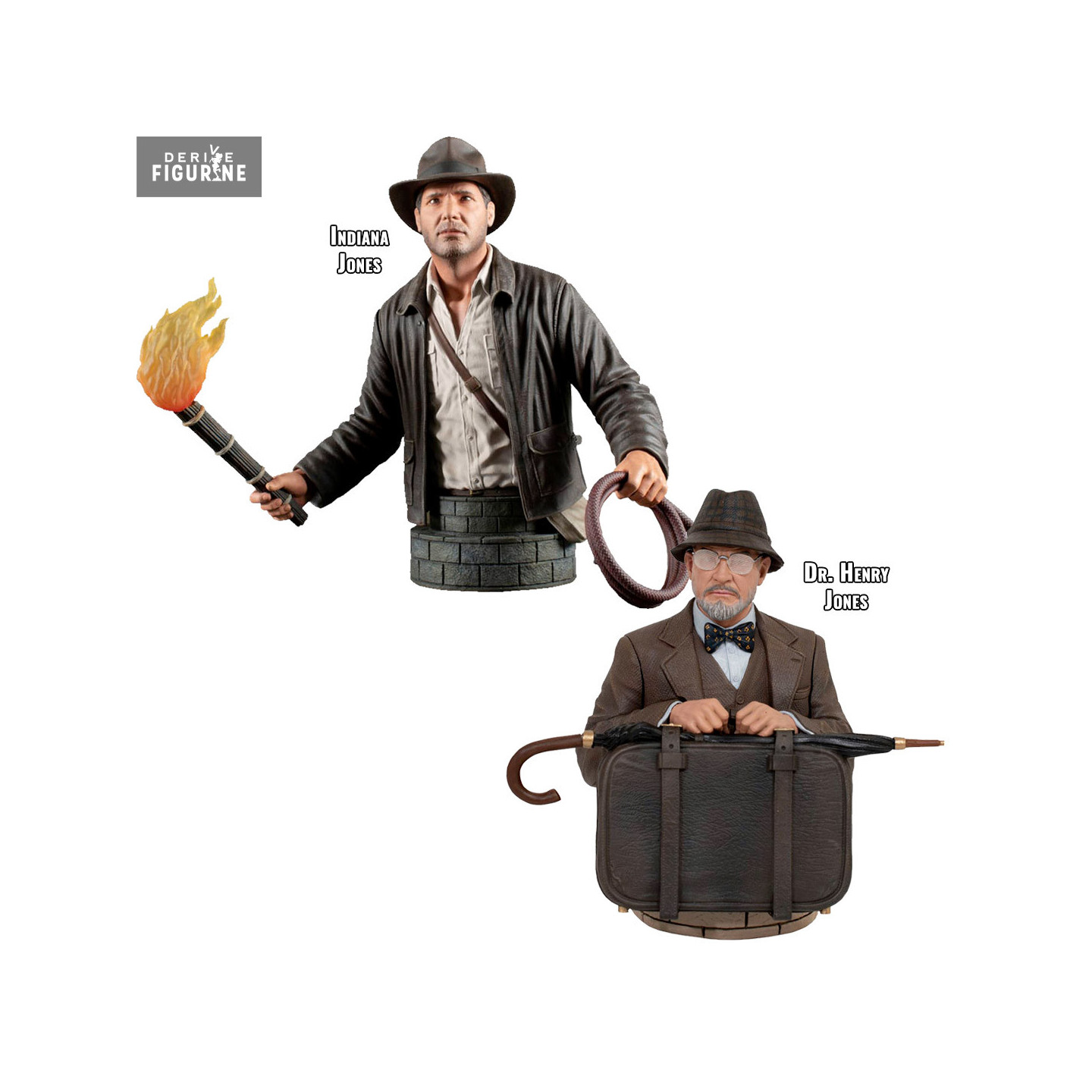 Buste officiel au choix entre Indiana Jones ou Dr. Henry Jones Sr en résine mesurant environ 15 centimètres de haut, à l'échelle 1/6. Le fabricant est Gentle Giant.