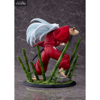 Voici une figurine du héros principal Inuyasha qui porte donc le nom de sa série et il s'agit d'un mi-homme mi-démon qui se propose ici dans une figurine hyper classe où il est armé de son sabre et en compagnie de bambous avec ce superbe socle décor. C'est donc son apparence humaine que nous avons ici et on le rappelle, c'est un personnage qui a un sacré caractère... voir même un mauvais caractère, cependant, ses amis peuvent toujours compter sur lui !