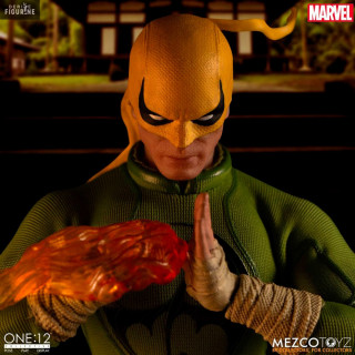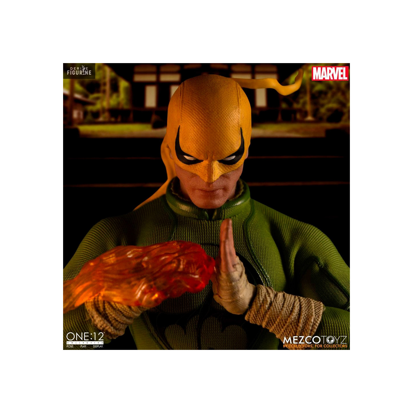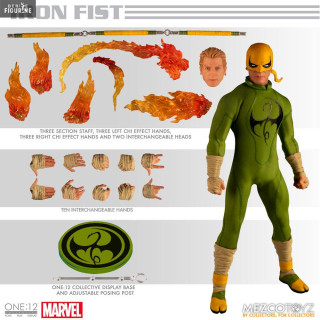 Iron Fist est un super héros Marvel qui a pour véritable indentié Daniel Rand. Ce personnage arrive ainsi dans la gamme des One:12 de Mezco et en plus de son visage où il porte son masque, la figurine est vendue avec un visage découvert mais aussi de très nombreux accessoires permettant entre autres de reproduire toutes les techniques d'Iron Fist. Spécialisé dans les arts martiaux, il est surnommé le poing d'acier et sa principale inspiration vient du légendaire et incroyable Bruce Lee.