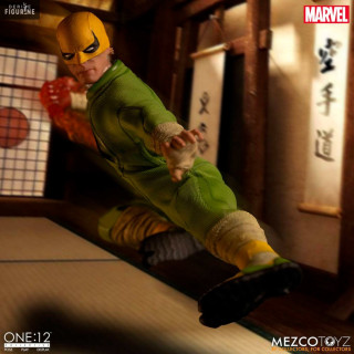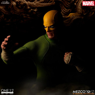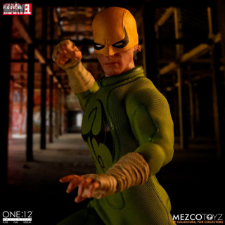 Figurine officielle de Iron Fist mesurant environ 17 centimètres de haut, à l'échelle 1/12. Elle est issue de la collection One:12. Le fabricant est Mezco Toys.