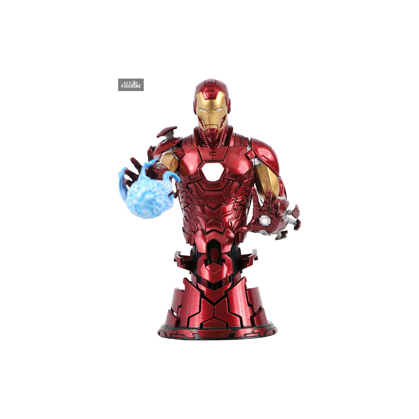 Buste officiel de Iron Man en résine mesurant environ 16 centimètres de haut, à l'échelle 1/7. Le fabricant est Diamond Select Toys.