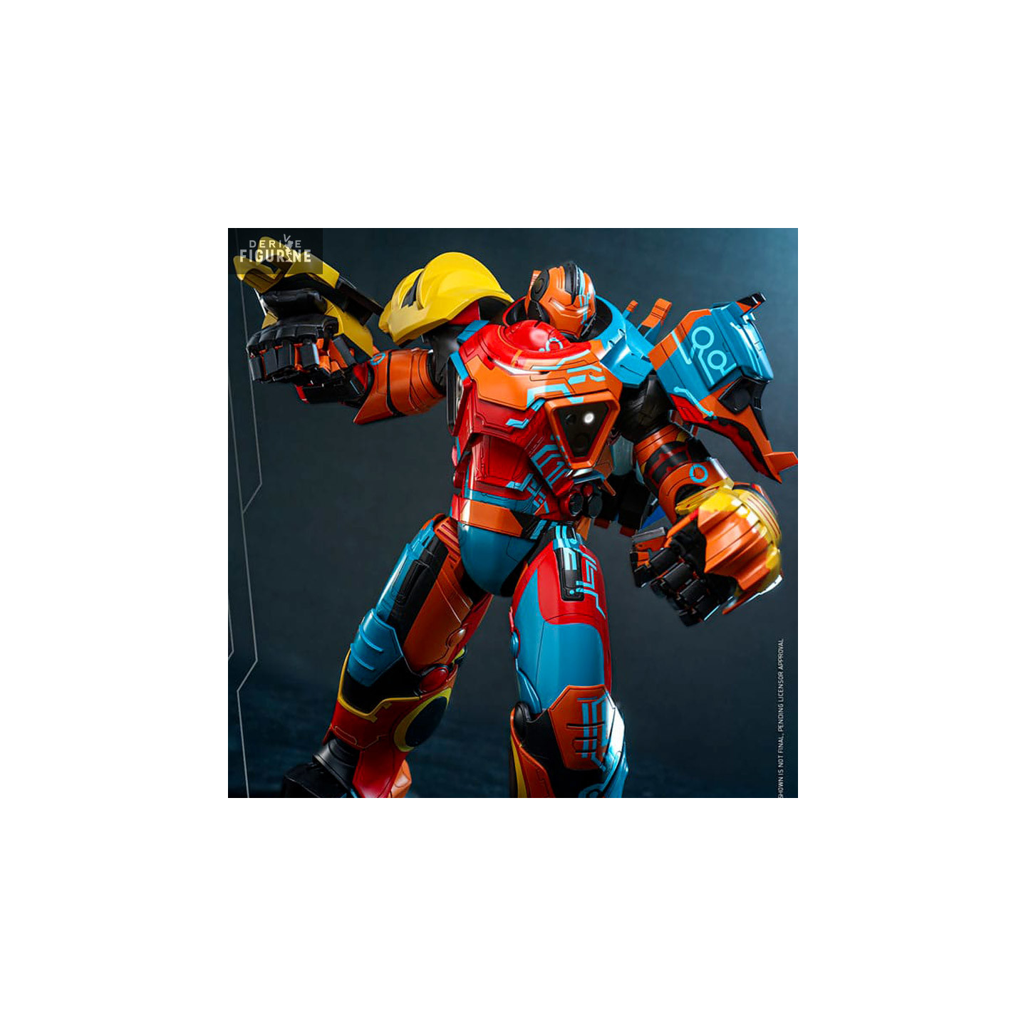 Figurine officielle de Sakaarian Iron Man mesurant environ 35 centimètres de haut, à l'échelle 1/6. Le fabricant est Hot Toys.