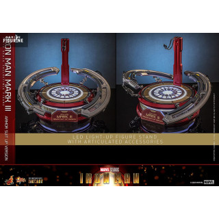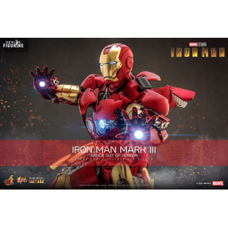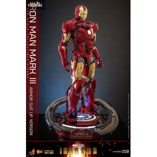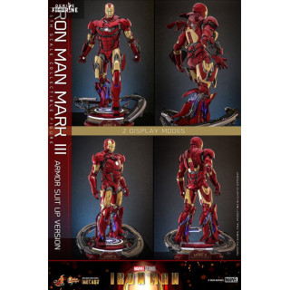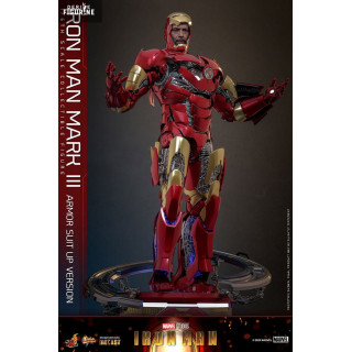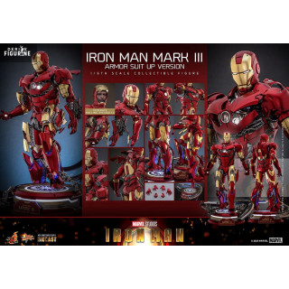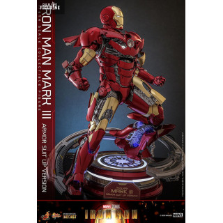 Figurine officielle de Iron Man Mark III (Armor Suit Up Version) en diecast mesurant environ 32 centimètres, à l'échelle 1/6. Elle est issue de la collection Movie Masterpiece. Le fabricant est Hot Toys.