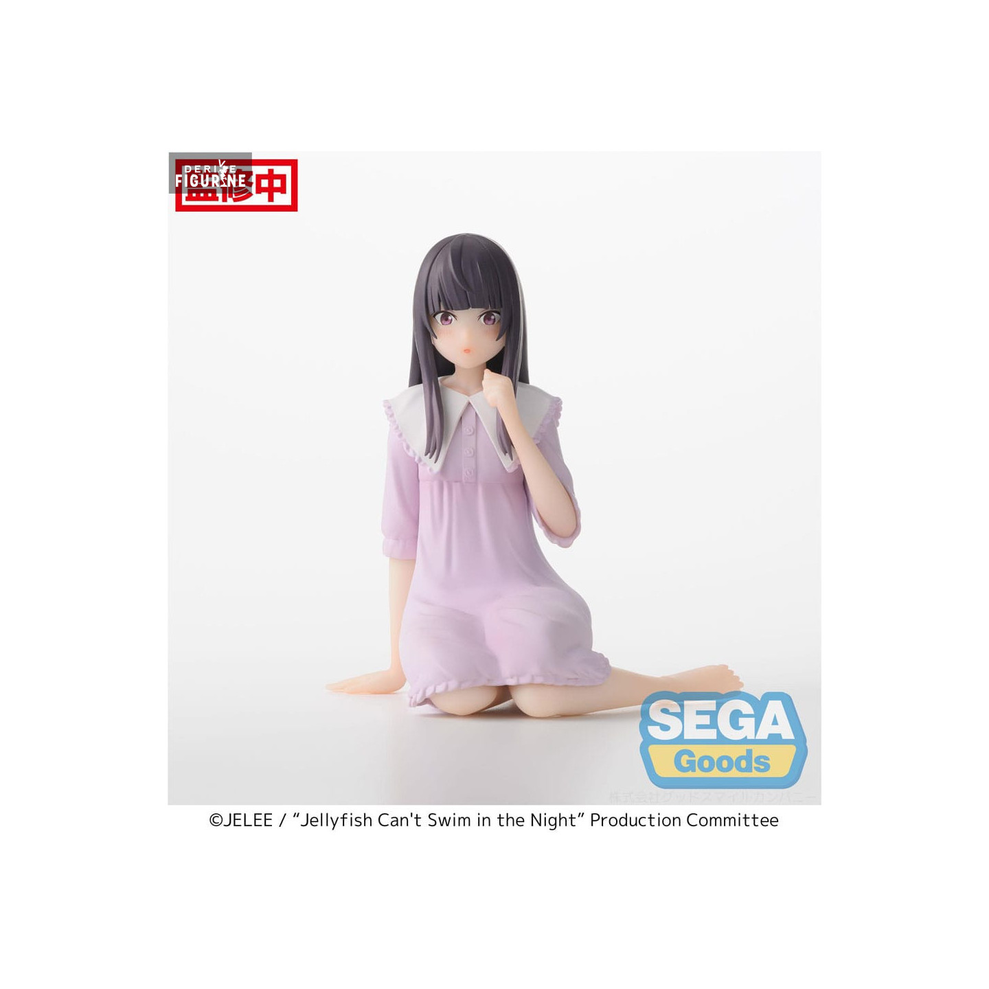 Mei Kim Anouk Takanashi est un personnage central de la série "Jellyfish Can't Swim in the Night", connue pour sa personnalité douce et réfléchie. La figurine la présente dans une pose assise, portant une chemise de nuit lavande avec un grand col blanc à volants, qui ajoute une touche de raffinement et de charme. Ses cheveux longs et noirs encadrent son visage délicat, où une expression sereine et paisible est parfaitement capturée.