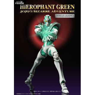 Figurine officielle de Hierophant Green en PVC mesurant environ 14 centimètres de haut. Elle est issue de la collection Statue Legend. Le fabricant est Medicos Entertainment.