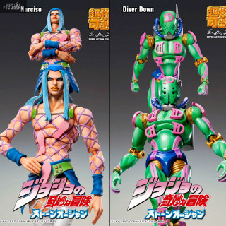JoJo's Bizarre Adventure Part6 vous présente deux alliés en figurines qui vont prêter main forte à Jolyne Cujoh dans son combat et on parle bien évidemment de Narciso et de son stand Diver Down qui entre dans la gamme des Super Action Chozokado. Vous pouvez donc choisir entre la figurine de Narciso, qui suit Jolyne par amour, ou bien alors son stand Diver Down spécialisé dans le combat rapproché.