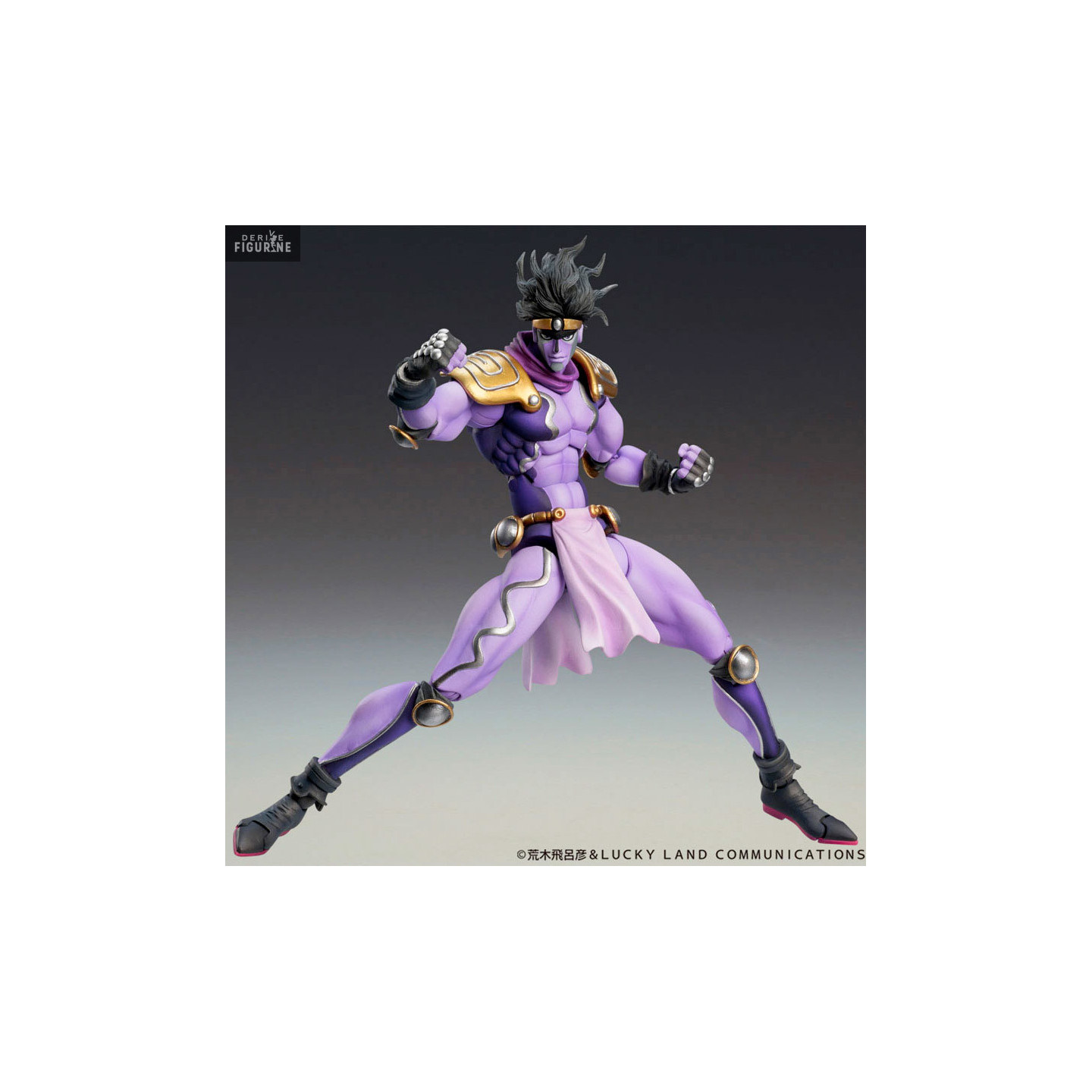 Star Platinum est le Stand de Jotaro et c'est sans doute l'un des plus puissants. Vous pouvez déjà voir qu'il a une musculature impressionnante, qui le rend très doué pour les combats rapprochés. Sur cette figurine, sa peau est violette et avec ses articulations, vous permettront de l'exposer de la façon que vous voulez.