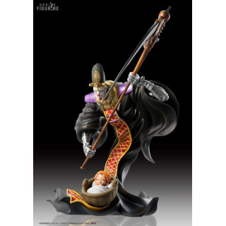 JoJo's Bizarre Adventure s'offre une figurine de Mannish Boy accompagné de son stand Death Thirteen pour donner vie à cette incroyable figurine de la gamme des Statue Legend. Mannish Boy est un bébé mais c'est surtout un génie malveillant qui travaille en réalité pour Dio et qui se sert de son stand Death Thirteen, capable d'infiltrer les rêves, pour tenter de tuer le groupe de Joseph pendant que ces derniers dorment !