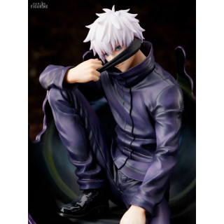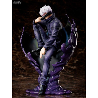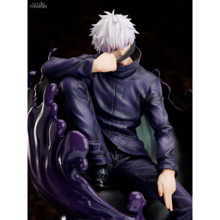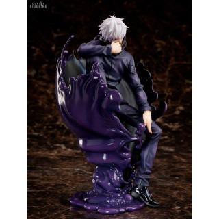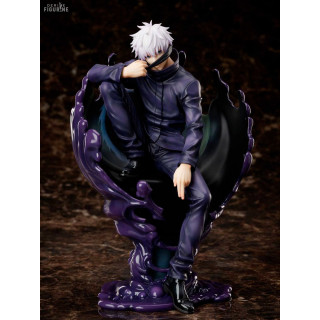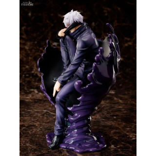Figurine officielle de Satoru Gojo en PVC mesurant environ 24 centimètres de haut, à l'échelle 1/7. Le fabricant est FuRyu.