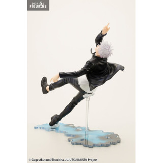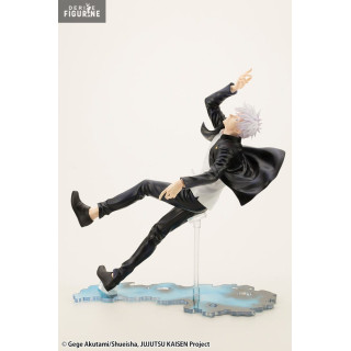 Figurine officielle de Satoru Gojo en PVC mesurant environ 23 centimètres de haut, à l'échelle 1/8. Elle est issue de la collection ARTFX. Le fabricant est Kotobukiya.