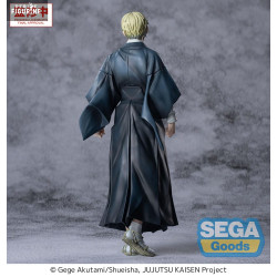 La figurine reproduit fidèlement son apparence sombre et menaçante. Naoya porte un kimono traditionnel noir aux plis marqués, resserré à la taille par une ceinture nouée. Sa chemise blanche dépasse légèrement des manches, contrastant avec l’obscurité de la tenue. Sa posture droite et son rictus cruel renforcent l’aura de mépris qui se dégage de lui. Les cheveux blonds ébouriffés et les sandales complètent un look à la fois sobre et chargé de tension.