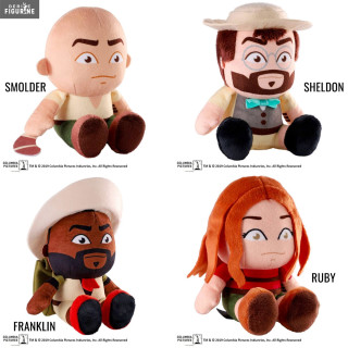 Si vous avez adorez Jumanji : Bienvenue dans la jungle, vous allez craquer devant ces peluches des héros. Ils sont dans la version lorsqu'ils sont entrés dans Jumanji, qui pour se mettre au goût du jour est devenu un jeu vidéo. Il y a donc le choix entre Ruby Roundhouse, l'avatar de Martha Kaply, le professeur Sheldon Oberon, l'avatar de Bethany, Dr Smolder Bravestone, l'avatar de Spencer et enfin Franklin Finbar, l'avatar de Anthony Johnson.
