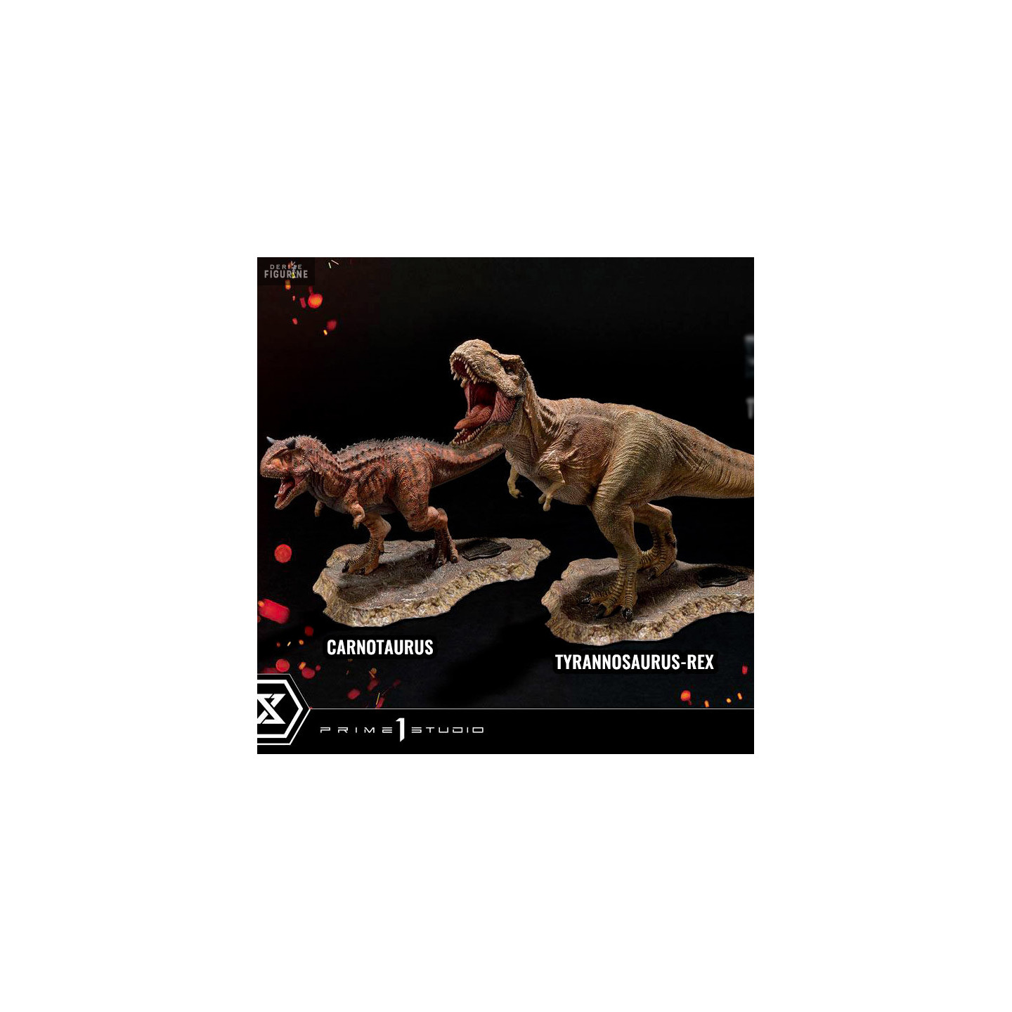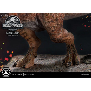 Figurine officielle au choix de Tyrannosaurus-Rex (23 x 42 x 15 cm) or Carnotaurus (16 x 33 x 14 cm) en PVC à l'échelle 1/38. Elle est issue de la collection Prime Collectibles. Le fabricant est Prime 1 Studio.