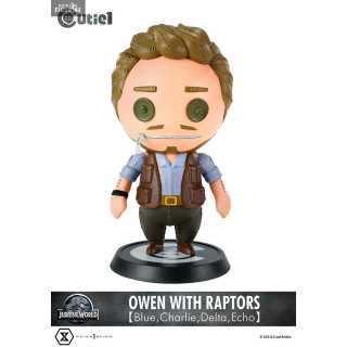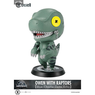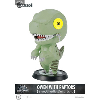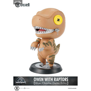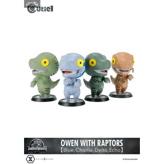 Figurines officielles de Owen et 4 Raptors en PVC mesurant environ 12 centimètres de haut. Elles sont issues de la collection Cutie1. Le fabricant est Prime 1 Studio.