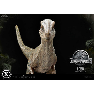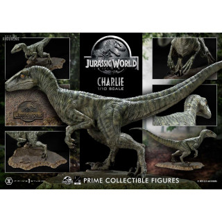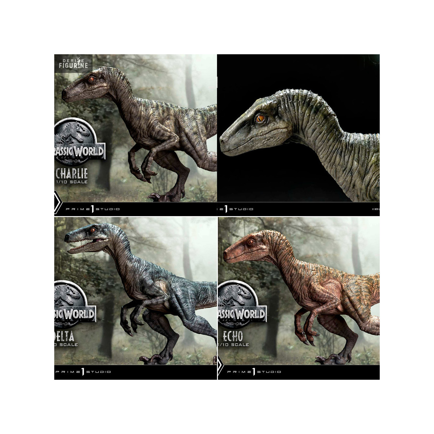 Figurine officielle au choix de Velociraptors Charlie, Delta ou Echo en résine mesurant environ 17 x 36 centimètres, à l'échelle 1/10. Elle est issue de la collection Prime Collectibles. Le fabricant est Prime 1 Studio.