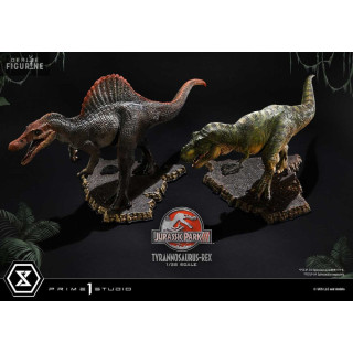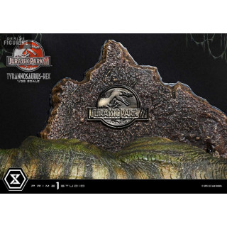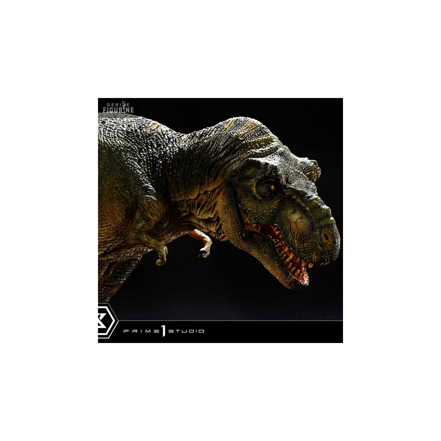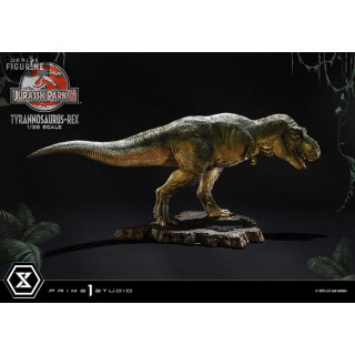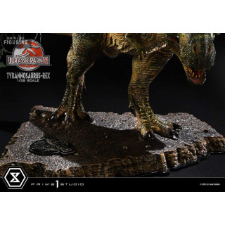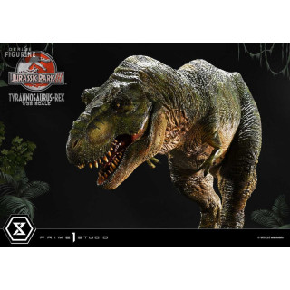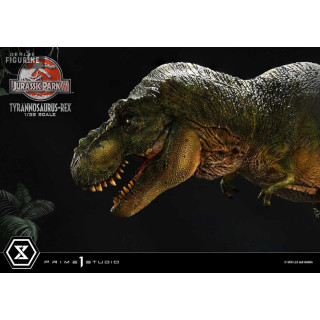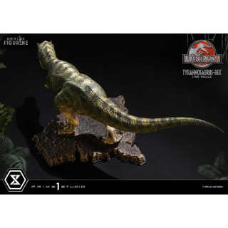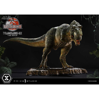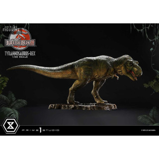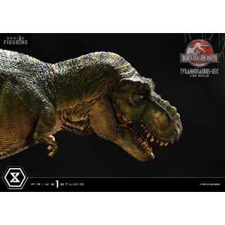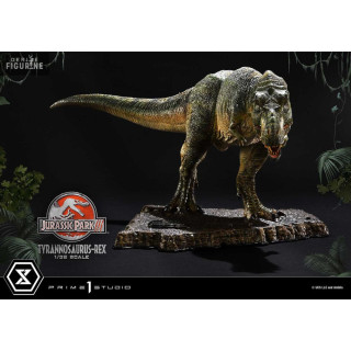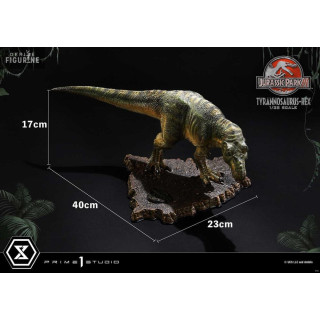 Figurine officielle de T-Rex en résne mesurant environ 17 x 40 x 23 centimètres, à l'échelle 1/38. Elle est issue de la collection Prime Collectibles. Le fabricant est Prime 1 Studio.