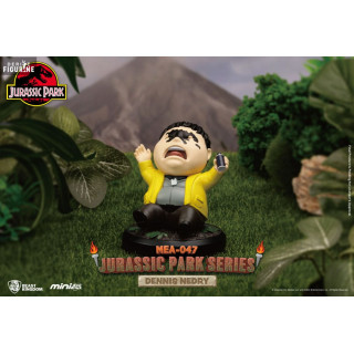 Dennis Nedry - Le programmeur informatique responsable du chaos dans le parc, capturé dans une pose humoristique et stressée, rappelant sa tentative de fuite désespérée.