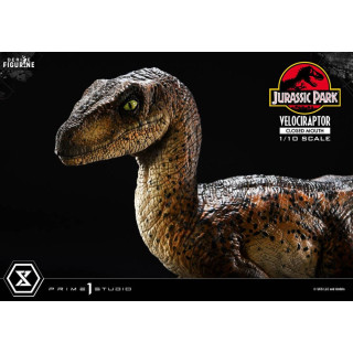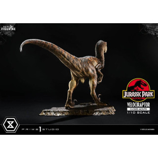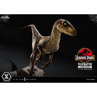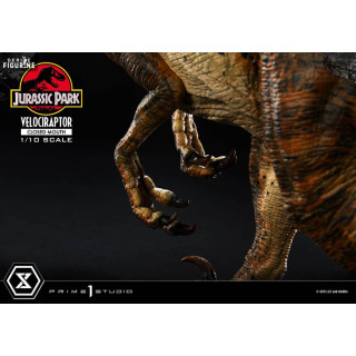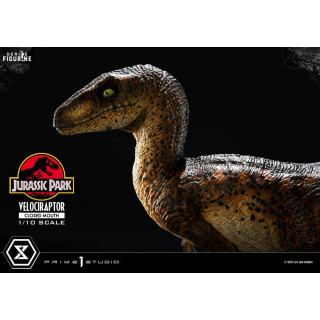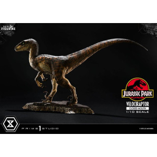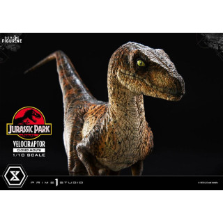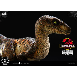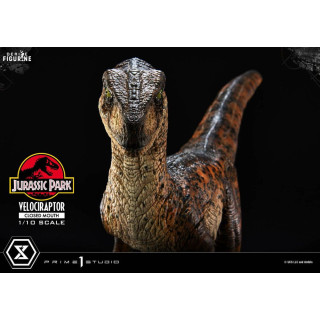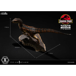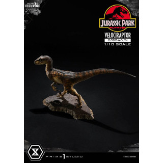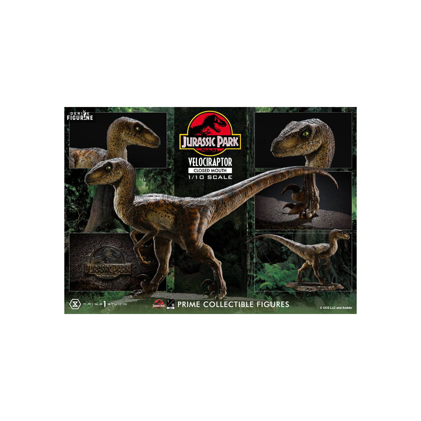 Figurine officielle de Velociraptor, Closed Mouth en PVC mesurant environ 19 x 32 x 14 centimètres, à l'échelle 1/10. Elle est issue de la collection Prime Collectibles. Le fabricant est Prime 1 Studio.