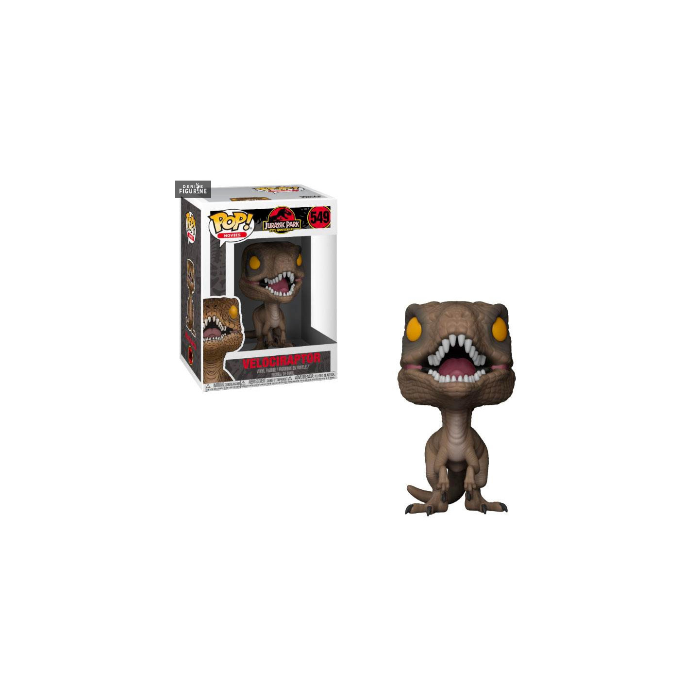 Figurine officielle de Velociraptor en vinyle d'environ 9 centimètres de haut. Le fabricant est Funko.