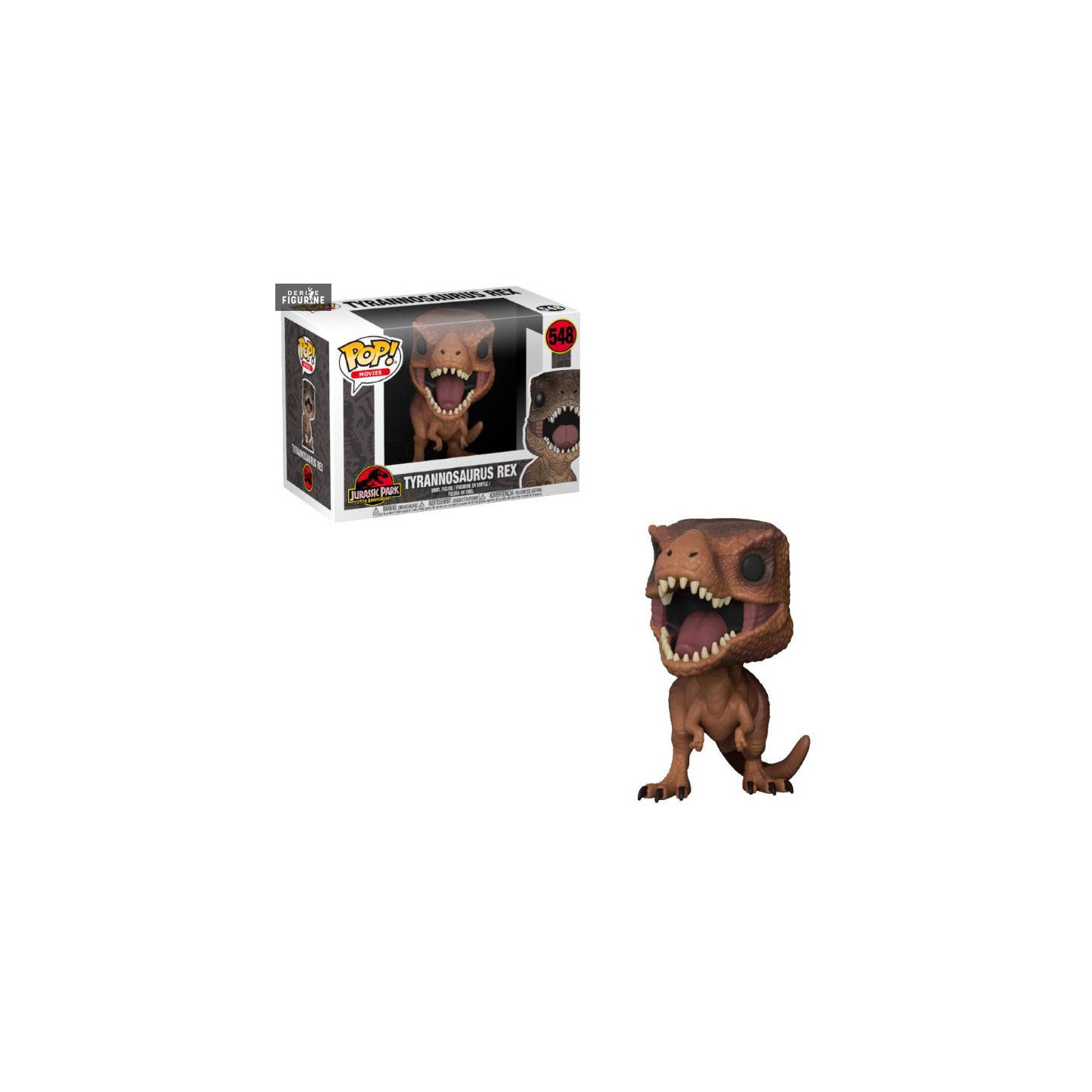 Figurine officielle de Tyrannosaurus Rex en vinyle d'environ 9 centimètres de haut. Le fabricant est Funko.