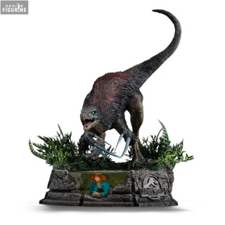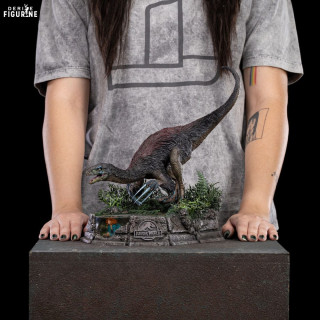 Cette figurine officielle du Therizinosaurus, issue de la collection Demi Art Scale et fabriquée par Iron Studios, est une pièce de collection exceptionnelle qui capture toute la férocité et le réalisme du dinosaure. Mesurant environ 29 cm de hauteur et réalisée en résine, elle représente le Therizinosaurus en posture d’attaque, exhibant ses griffes gigantesques et son regard perçant. Le souci du détail est remarquable : son plumage, sa peau texturée et ses crocs sont finement sculptés pour un rendu ultra-réaliste. Le socle, orné de végétation et d’un décor rocheux, inclut également une reproduction de Claire Dearing, cachée sous l’eau, recréant ainsi l’une des scènes les plus marquantes du film.