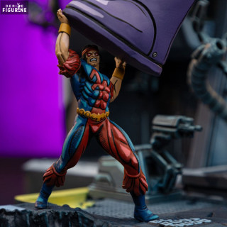 L’univers de Marvel Comics et des X-Men est marqué par la lutte constante entre les mutants et ceux qui les craignent. La Salle des Dangers, en plus d’être un champ d’entraînement, est aussi le théâtre de certaines des batailles les plus mémorables contre des menaces robotiques ou holographiques. Ce diorama illustre avec brio l’affrontement entre un Sentinelle imposant et plusieurs héros mutants, qui unissent leurs forces pour surmonter cette épreuve.
