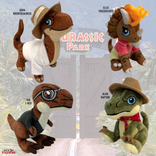 La saga Jurassic Park s'offre une nouvelle série de peluches et celles-ci sont très particulières mais aussi, sacrément mignonnes ! Ainsi, ce pack vous permet d'obtenir les célèbres personnages des films de la franchise revisités à la sauce dinosaure ! Quatre peluches vous seront donc envoyées avec ce pack et voici les modèles que vous aurez :