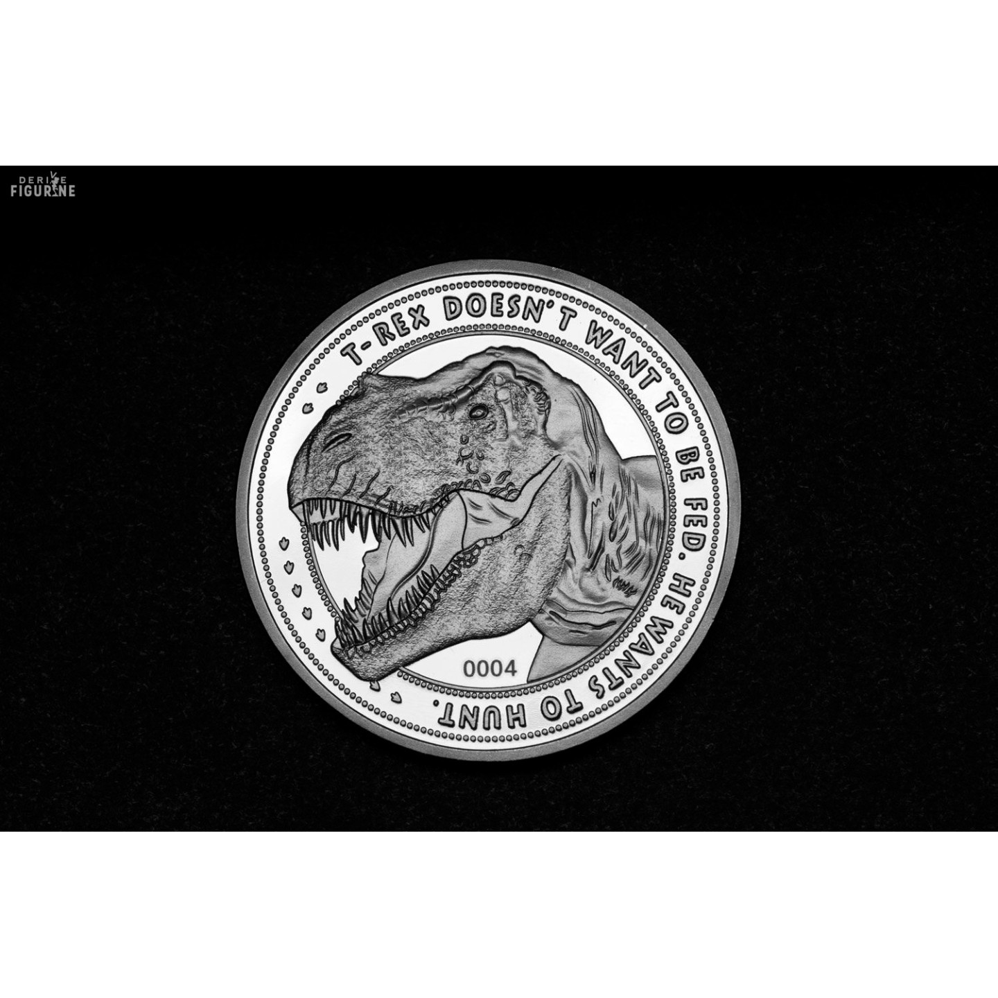 Voici une nouvelle pièce de collection sur Jurassic Park. L'une des faces nous montre le logo tandis que sur l'autre nous avons la tête d'un Tyrannosaurus Rex. Cette édition est limitée à 9995 exemplaires.