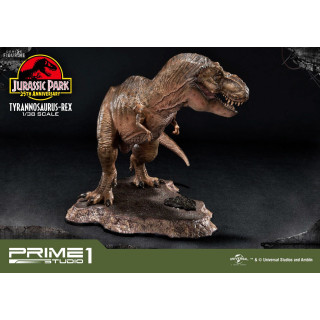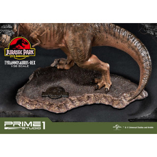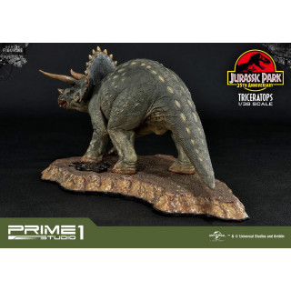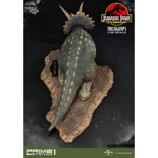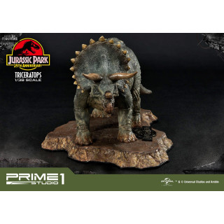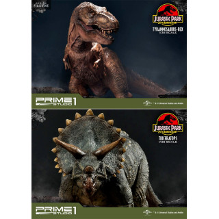 Figurine officielle au choix entre le Tyrannosaurus-Rex (~18x25x16 cm) ou le Triceratops (~11x25x9 cm) en PVC, à l'échelle 1/38. Le fabricant est Prime 1 Studio.