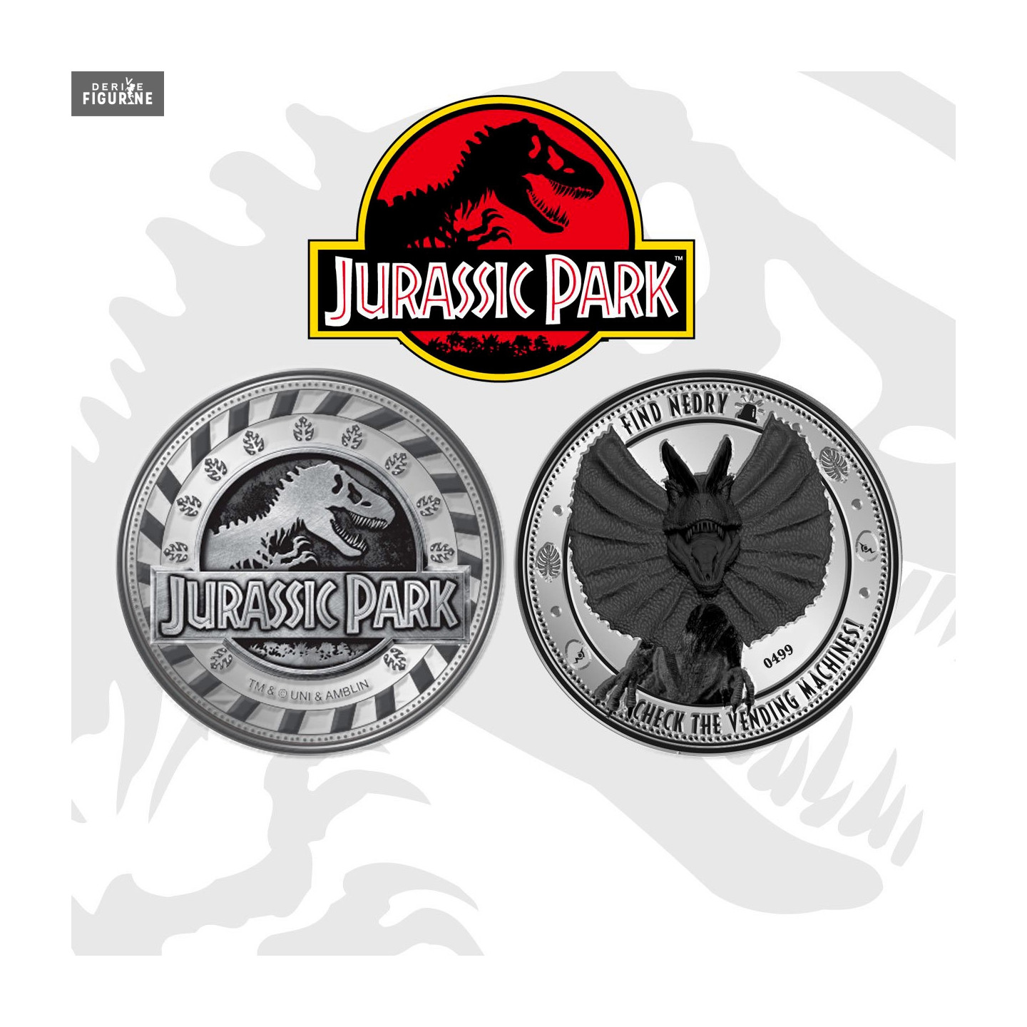Pièce officielle de Jurassic Park mesurant environ 3,8 centimètres de diamètre, limitée à 9 995 exemplaires. Le fabricant est FaNaTtik.