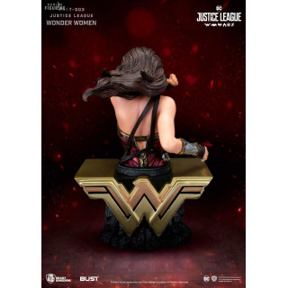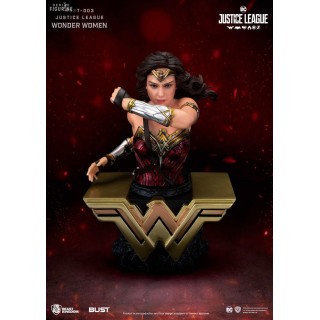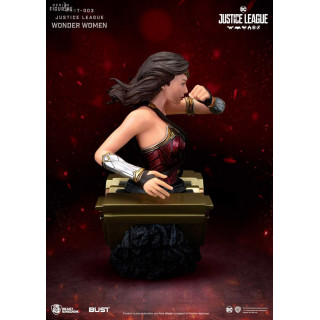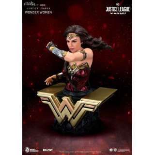 Buste officiel de la Justice League au choix entre Batman (16 x 9 x 9 cm), Superman (15 x 11 x 8 cm) ou Wonder Woman (15 x 10 x 10 cm) en PVC. Le fabricant est Beast Kingdom.