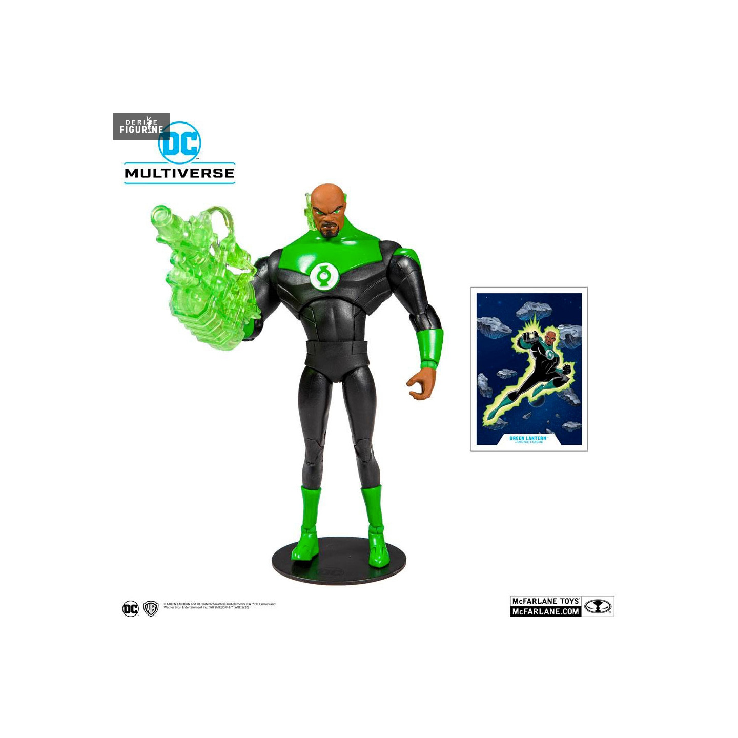 Figurine officielle de Green Lantern mesurant environ 18 centimètres de haut. Le fabricant est McFarlane Toys.