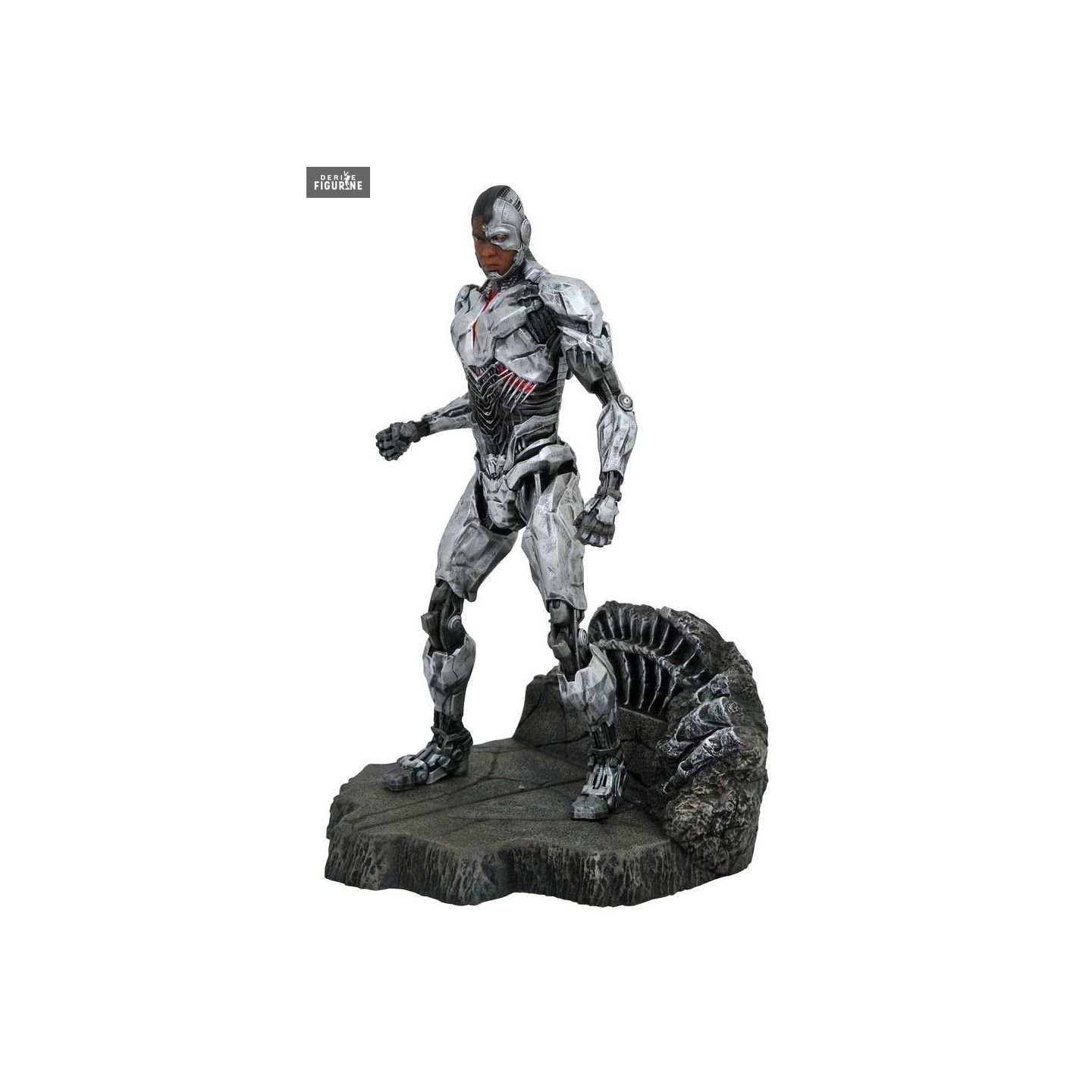 Figurine officielle de Cyborg en PVC d'environ 23 centimètres de haut. Elle est fabriquée par Diamond Select Toys.
