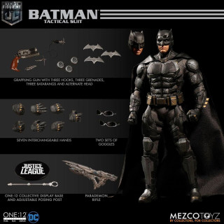 Figurine officielle de Batman Tactical Suit d'environ 16 centimètres de haut à l'échelle 1/12. Elle est issue de la collection One:12. Le fabricant est Mezco Toys.