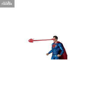 La figurine reproduit fidèlement l’allure du Superman de Henry Cavill, avec une finition impressionnante sur la combinaison texturée, le logo S en relief, et surtout la cape souple au tombé réaliste. En bonus, on retrouve deux accessoires emblématiques : un effet de vision thermique rouge et un masque de Batman brûlé, parfaits pour rejouer la scène culte du film.