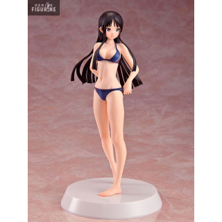 Figurine officielle de Mio Akiyama en PVC mesurant environ 20 centimètres de haut, à l'échelle 1/8. Le fabricant est Our Treasure.