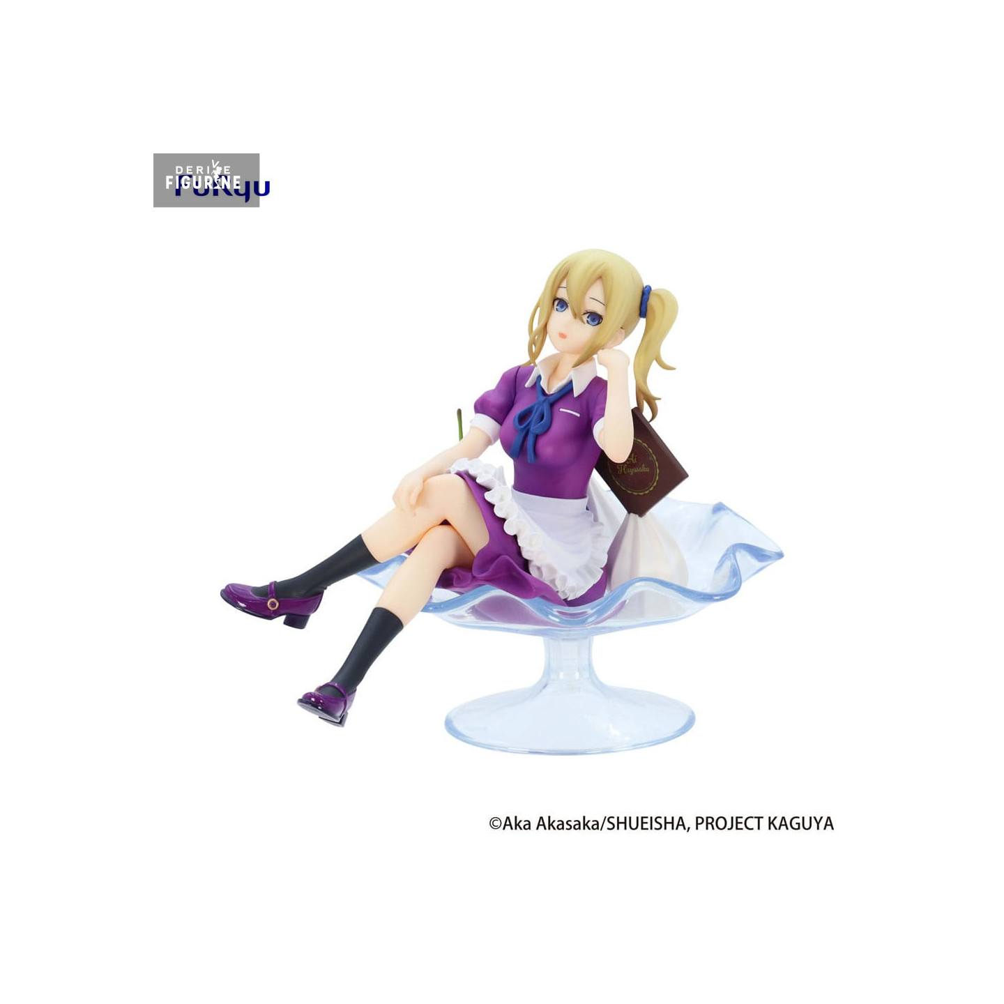 Dans cette figurine, Hayasaka est représentée dans une tenue de serveuse élégante, avec une robe violette ornée d'un tablier blanc et de rubans bleus. Elle est assise de manière décontractée sur un support en forme de parfait, un clin d'œil astucieux au titre de la figurine. La posture relâchée de Hayasaka, avec une main appuyée sur son visage et l'autre tenant un carnet, reflète parfaitement son attitude confiante et son allure raffinée.