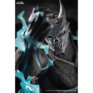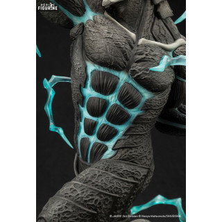 Chaque détail de cette figurine a été méticuleusement réalisé pour refléter la fureur et la force de Kaiju No. 8. Sa posture, évoquant une montée en puissance avant l'assaut, est dynamisée par des éclats de bio-énergie bleu électrique qui semblent surgir de son corps. Les textures variées reproduisent fidèlement la peau durcie et les carapaces osseuses qui caractérisent cette créature, tandis que les finitions en matière translucide imitent parfaitement le flot de sa puissance destructrice.