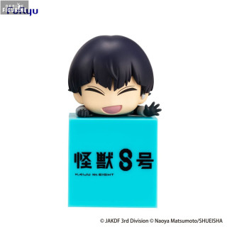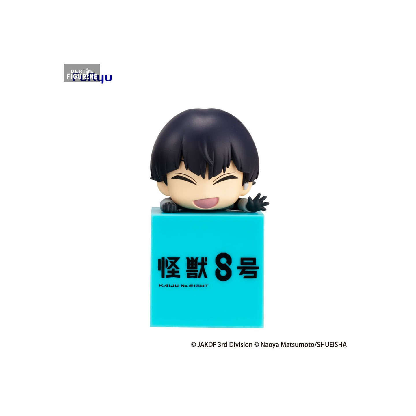 La figurine montre Soshiro sortant d'un cube turquoise portant l'inscription "Kaiju No. 8" en japonais, ajoutant une touche unique et mémorable. Sa tête surdimensionnée et ses traits simplifiés donnent à cette figurine un charme irrésistible qui captivera immédiatement le regard.