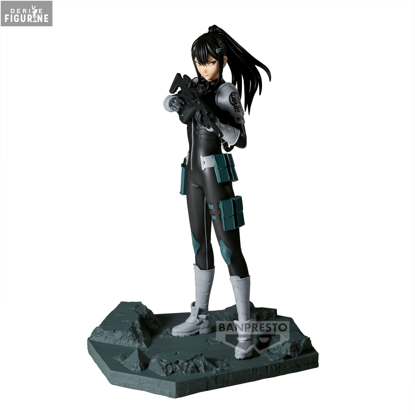 Mina Ashiro, la puissante commandante de la Force de Défense, est représentée ici dans son uniforme de combat, prête à affronter les terrifiants Kaiju. Chaque détail de son costume, de son armure sophistiquée à son arme redoutable, est fidèlement reproduit pour offrir une représentation authentique du personnage tel qu'il apparaît dans la série animée. Son expression déterminée et son regard perçant montrent bien qu'elle est une leader redoutable, prête à protéger l'humanité contre toute menace.