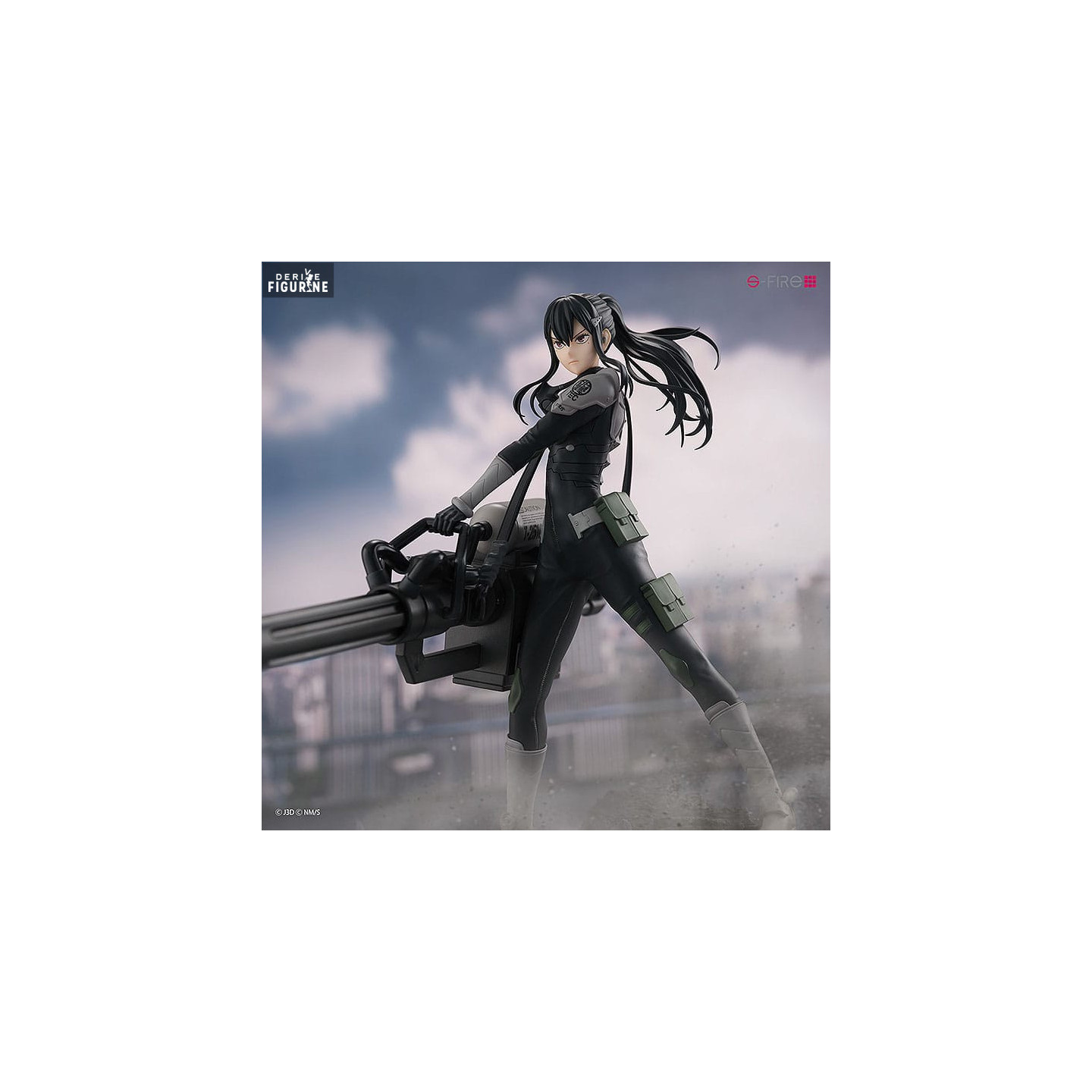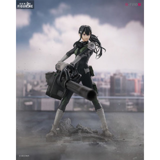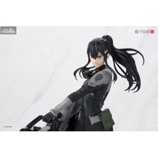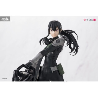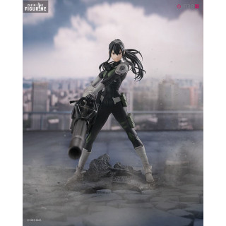 Le soin apporté aux détails de cette figurine est impressionnant. La tenue tactique de Mina, composée d'une combinaison noire et grise, est fidèlement reproduite, soulignant son professionnalisme et son efficacité en tant que chef de bataillon. Les nuances de vert militaire sur son uniforme et ses accessoires accentuent son look de soldat de première ligne. Sa longue chevelure noire est sculptée de manière dynamique, capturant le mouvement, tandis que sa posture montre son attitude inébranlable.