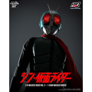 Figurine officielle de Masked Rider No.2+1 (Shin Masked Rider) mesurant environ 32 centimètres de haut, à l'échelle 1/6. Elle est issue de la collection FigZero. Le fabricant est ThreeZero.