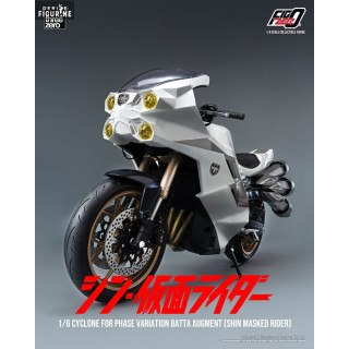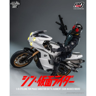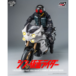 Figurine officielle de Cyclone for Phase Variation Batta Augment (Shin Masked Rider) mesurant environ 35 centimètres de haut, à l'échelle 1/6. Elle est issue de la collection FigZero. Le fabricant est ThreeZero.