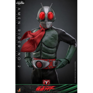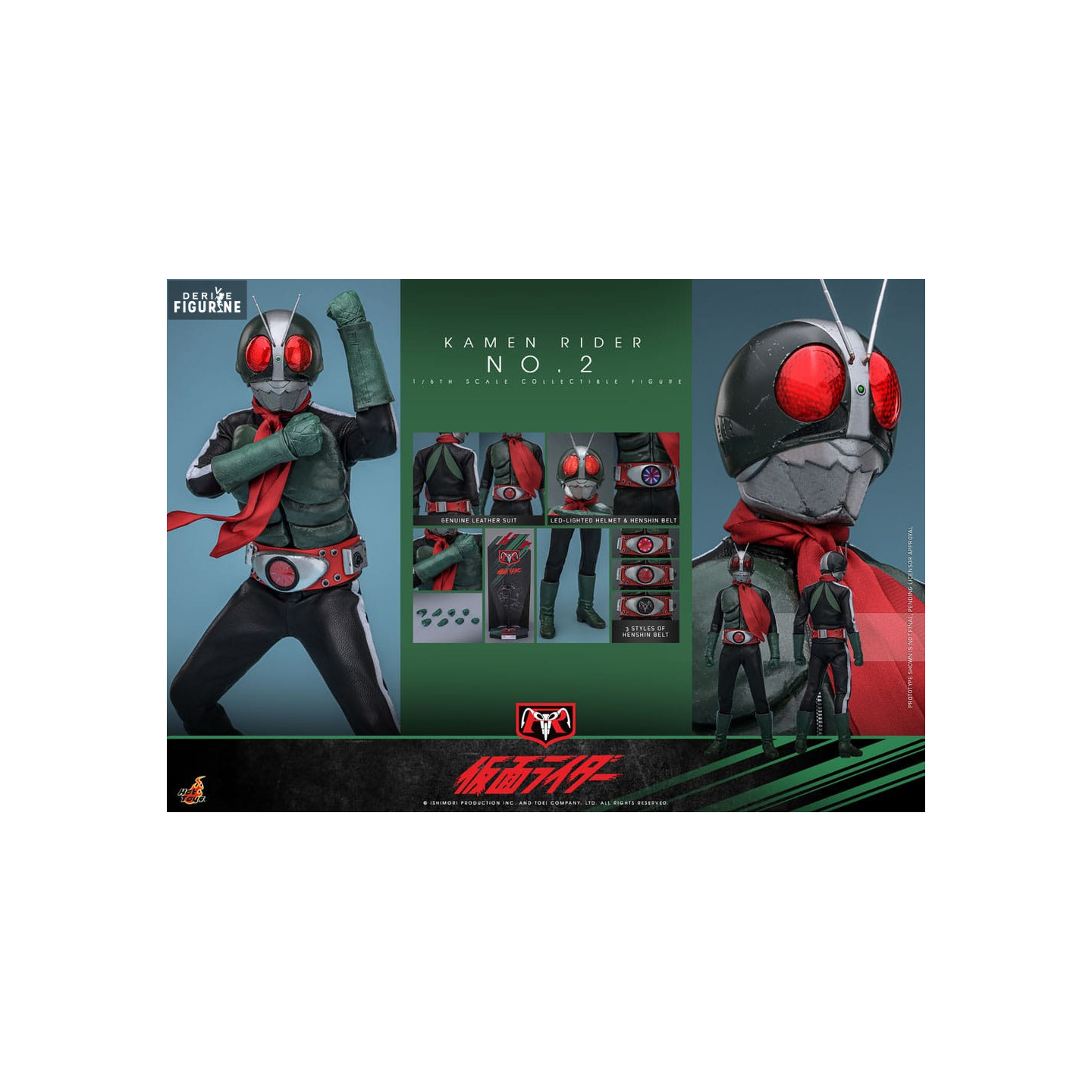 Figurine officielle de Kamen Rider No. 2 mesurant environ 30 centimètres de haut, à l'échelle 1/6. Le fabricant est Hot Toys.