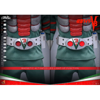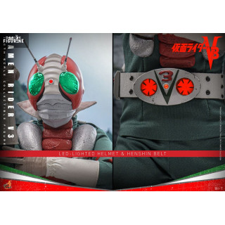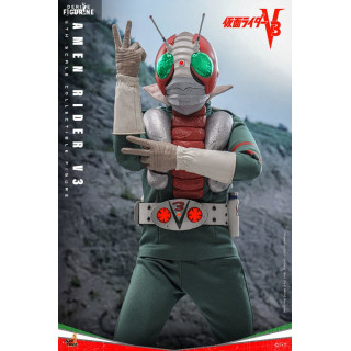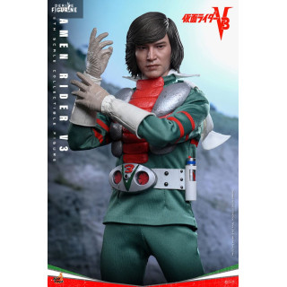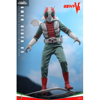Figurine officielle de Kamen Rider V3 mesurant environ 30 centimètres de haut, à l'échelle 1/6. Le fabricant est Hot Toys.